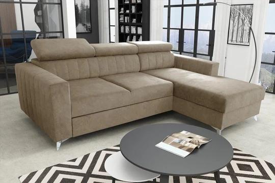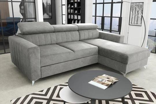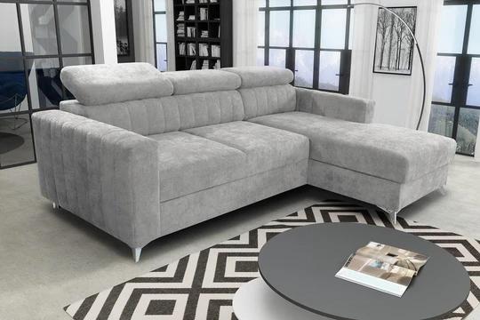 Zadní strana je čalouněná, takže ji můžete umístit do rohu i středu místnosti. Sedačka stojí na vysokých chromovaných nožkách.