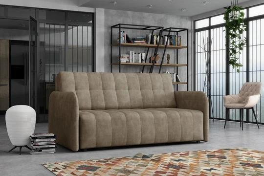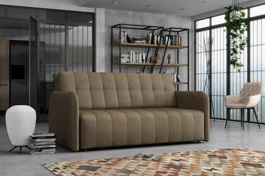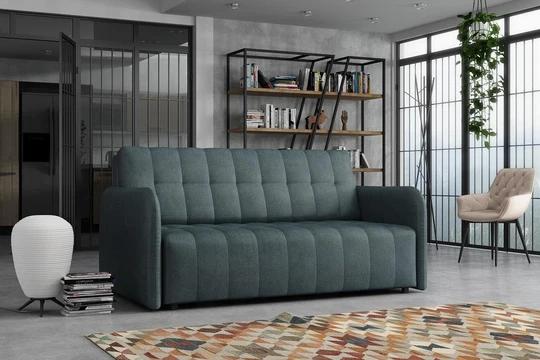 Pohovka je vyplněna kvalitní PUR pěnou, která je synonymem pro pružnost, přizpůsobivost a dlouholetou výdrž. Pružina typu faliste zvyšuje její komfort a celkově podporuje funkci pěny. Zadní strana je čalouněná, takže jí můžete umístit do rohu i středu místnosti. Disponuje jednoduchým systémem rozkladu. Rozložíte ji dvěma rychlými pohyby.