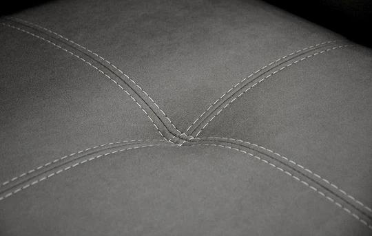 Sedací sestava má čalouněná záda. Stojí na chromovaných nožkách.