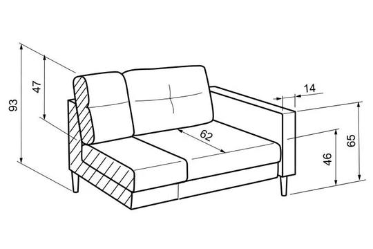 Konstrukce pohovky je tvořená kombinací masivního dřeva a dřevotřísky. Pohovka je vyplněná kvalitní PUR pěnou, která má výborný odpor proti stlačení a vysokou tvarovou stálost. Pružina typu faliste zvyšuje její komfort a celkově podporuje funkci pěny.