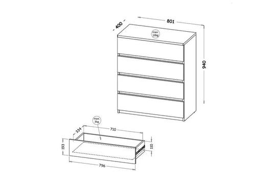 Celá sestava je vyrobena z kvalitního lamina, které je pevné a díky tomu i velmi odolné proti mechanickému poškození (př. poškrábání). Nedochází časem ke změně barev, je odolné vůči krátkodobému působení vody a snadné na údržbu. Sestava je opatřena hranou ABS, které se vyznačují svojí pevností a odolností vůči nárazům.