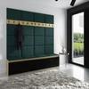 Taky to znáte? Otevřete hlavní dveře domu a na zemi se válí plno pohozených bot, tašek, sem tam i nějaké to oblečení? S tímto už je konec. S naší elegantní předsíňovou stěnou DIAMOND 4 budete mít vše krásně uloženo a navíc rozáří Vaší chodbu a dodá ji pocit útulnosti. Nábytek je vyroben z kvalitního lamina o tloušťce 1,6 cm, který je odolný proti poškrábání, vlhkosti a vysokým teplotám. Navíc je nenáročný na údržbu. Hrany jsou z PVC materiálu. Předsíňová stěna poskytuje prostor jak pro pověšení kabátů, bund či jiných oděvů, ale také i pro boty. Nejvíce oceníte ale místo k sezení, které Vám umožní snadnější obouvání. Stěna se pyšní svými moderními a hlavně i barevnými čalouněnými panely, které jsou poslední dobou velkým trendem. Jsou vyrobeny ze sametově hladké látky. Na výběr máte až několik odstínů. Sestava se skládá z botníků, věšáků a panelů