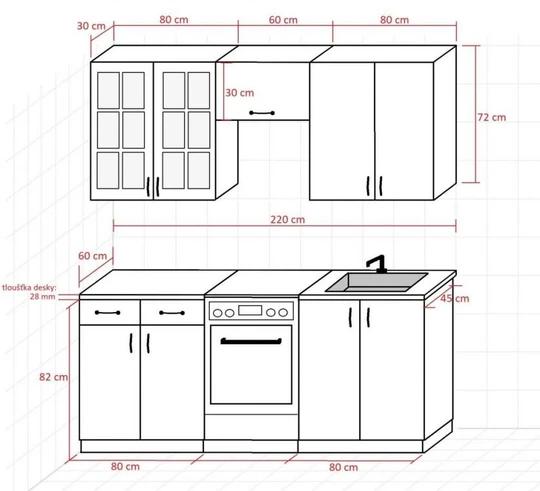 Trávíte dost času v kuchyni a baví vás neustále vymýšlet nové a nové recepty? S kuchyní MICHELLE 220 cm bude vaření a pečení jedna báseň. Kuchyň nejen že svou zářivě bílou barvou prosvětlí celý Váš interiér, ale vnese do domova i nádech venkovského styluCelá sestava je vyrobena z odolného lamina o tloušťce 1,6 cm, které je snadno čistitelné. Pracovní deska má hrubost 28 mm. Kuchyňskou linku můžete pořídít i o délce 240 cm nebo 260 cm. Je tedy vhodná i do menších místností.