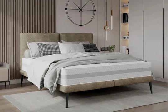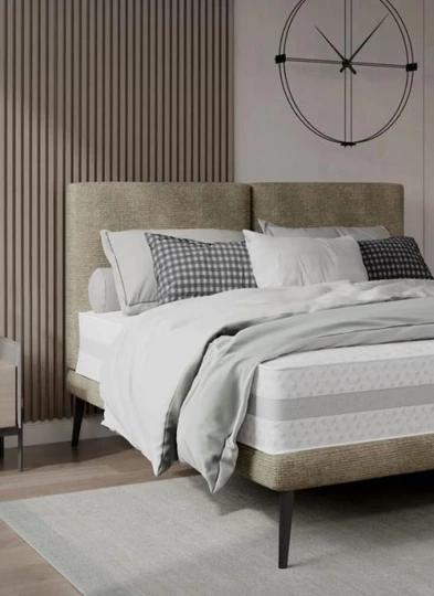Čalouněna postel KAHLA 180x200 zaujme na první pohled svým minimalistickým designem a vysokým čelem.