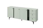 Díky štíhlým vysokým nohám působí komoda lehce a moderně. Vnitřek komody disponuje prostornými a hlubokými policemi. Na výběr máte ze dvou dekoru a to GRANAT a ŠALVĚJ.