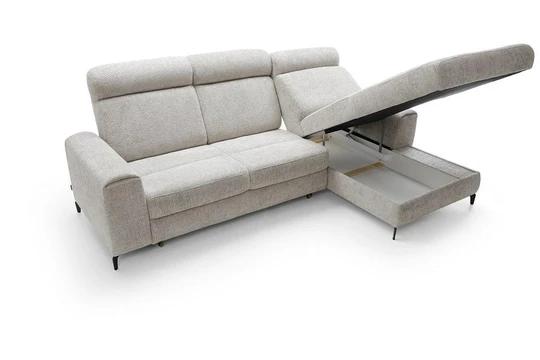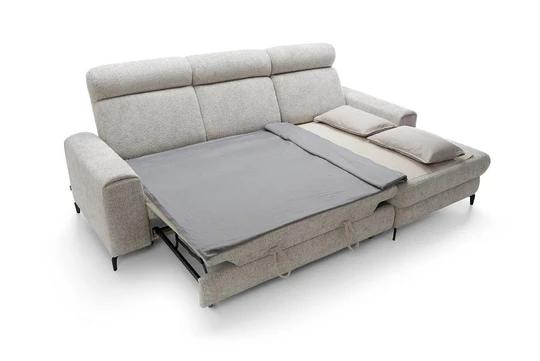 Bern disponuje úložným prostorem, ale samozřejmě i rozkladem o velikosti 217x127 cm, díky kterému vytvoříte z vašeho odpočinkového místa prostor na spaní pro hosty. Systém rozkládání je typu DELFÍN - matrace je vysune ze spodní části sedačky za úchytku. Po vysunutí se zvedá tažením do výše sedací části.