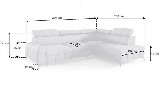 Zadní strana je čalouněná, takže ji můžete umístit do rohu i středu místnosti. Sedačka nabízí možnost měnit druh a barvu látky dle svých preferencí. Rovněž je na výběr strana rohové části sedačky.