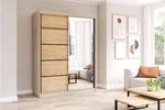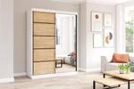 Díky posuvným dveřím vám skříň nezabírá místo navíc. Skříň je rozdělena na dvě části, vybavena několika policemi, šatní tyčí. Zrcadlo vám pomůže vychytat poslední detaily při oblékání.