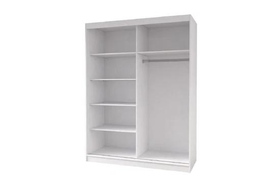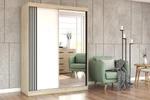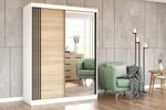 Díky posuvným dveřím vám skříň nezabírá místo navíc. Skříň je rozdělena na dvě části, vybavena několika policemišatní tyčí. Zrcadlo vám pomůže vychytat poslední detaily při oblékání.