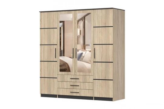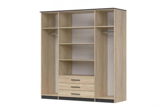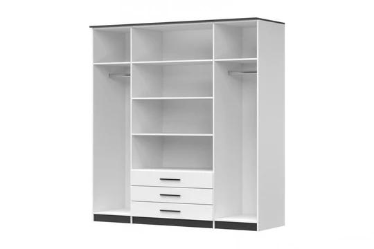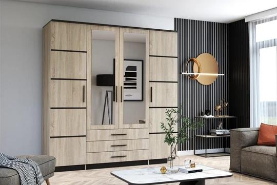 Skříň je rozdělena na tři části, vybavena několika policemi, šatní tyčí a šuplíky. Zrcadlo vám pomůže vychytat poslední detaily při oblékání.