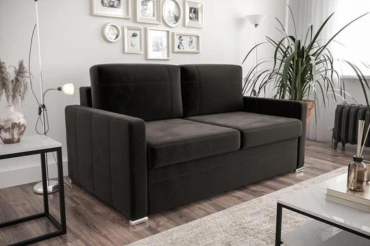 Zadní strana je čalouněná, takže ji můžete umístit do rohu i středu místnosti. Nožky jsou chromované.