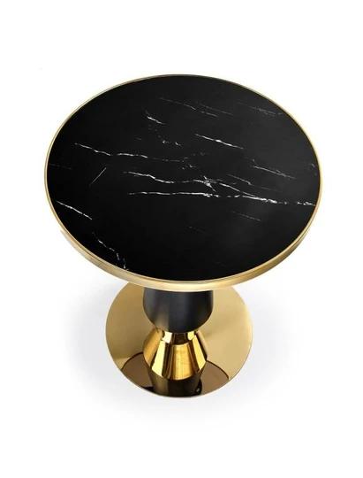 Díky malým rozměrům je stůl ideální do menších místností, kde není místo pro větší nábytek. Deska stolu je ozdobena dekorem černého mramoru a zlaté prvky mu navíc dodávají jedinečné kouzlo.