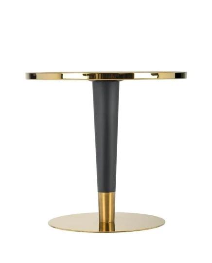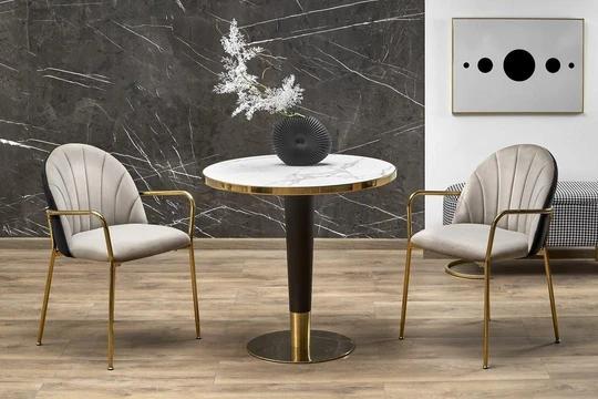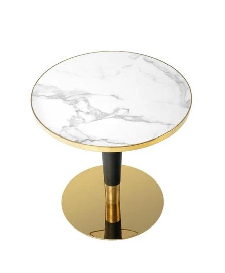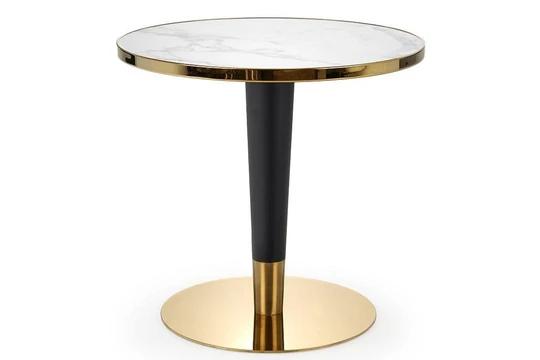 Díky malým rozměrům je stůl ideální do menších místností, kde není místo pro větší nábytek. Deska stolu je ozdobena dekorem bílého mramoru a zlaté prvky mu navíc dodávají jedinečné kouzlo.