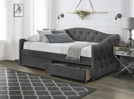 Postel disponuje úložným prostorem v podobě šuplíků. Součástí není matrace.