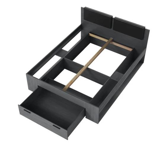 Postel má úložný prostor v podobě vysouvacího šuplíku. Na stránách má prostor pro odložení knih či jiných potřeb, které rádi využíváte před spaním.