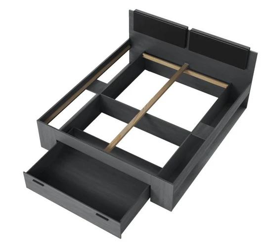 Postel má úložný prostor v podobě vysouvacího šuplíku. Na stránách má prostor pro odložení knih či jiných potřeb, které rádi využíváte před spaním.