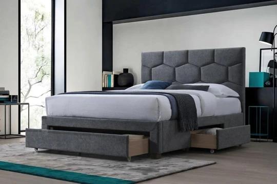 Její nápadné vysoké čelo zaujme hned na první pohled, stejně jako množství zásuvek úložného prostoru, které postel nabízí.