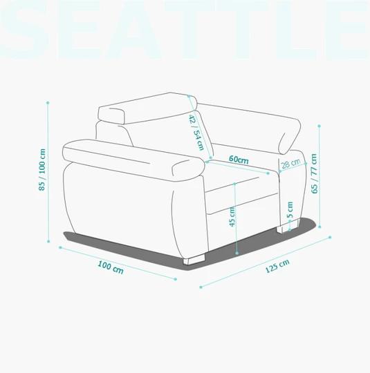 Moderní křeslo Seattle s polohovatelnými opěrkami hlavy i loktů přizpůsobí komfort na míru vašim potřebám.