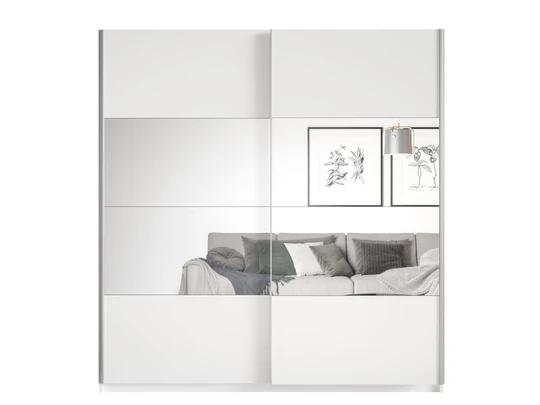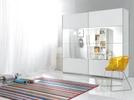 Velká bílá šatní skříň se zrcadlem a posuvnými dvířky Maia 57. Skříň pochází z nábytkového programu do ložnice Maia, který nabízí také komodu, postele či noční stolky.