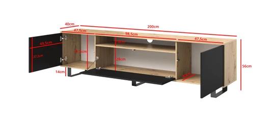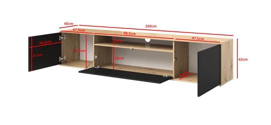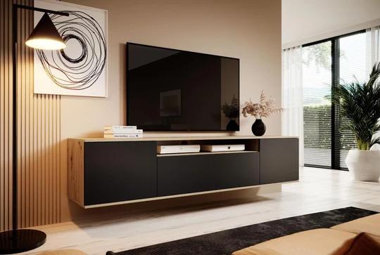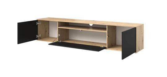 Moderní TV komoda WADE pod televizi v dekoru dub artisan/černý.