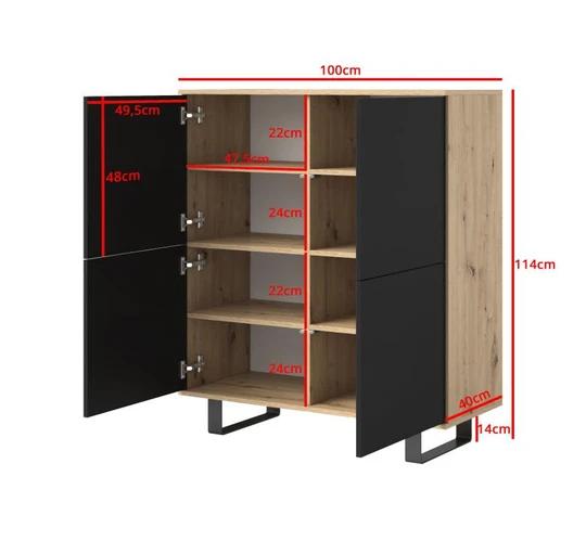 Komoda má systém otevírání push to open, což znamená, že stačí jemné zatlačení a dvířka se pootevřou do polohy, aby je bylo možné uchopit.