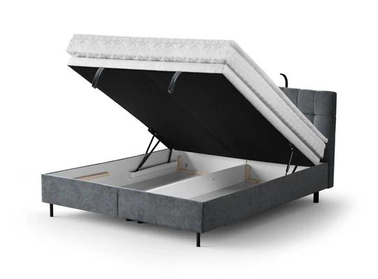 Postel má navíc úložný prostor, který se otevírá zapomocí plynových pístů. Její součástí jsou také dvě kovové lampy v černé barvě s možností regulace. Osvětlení je ve světlé barvě. Nabíjí se přes USB.