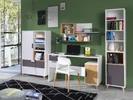 Sestava obsahuje skříň, regál. Nechybí ani police a dokonce zde najdete i psací stůl se skříňkou. Nábytek nabízí štědrý úložný prostor, který pojme jak učebnice, tak osobní poklady.