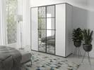 Velká a prostorná šatní skříň se zrcadlem v bílo-černém elegantním dekoru SOLNA.