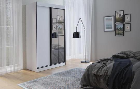 Velká a prostorná šatní skříň se zrcadlem v bílo-černém elegantním dekoru SOLNA II.