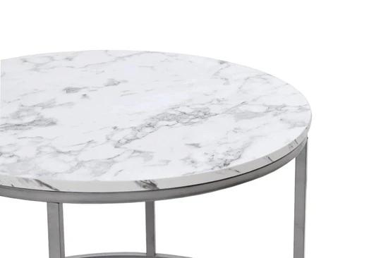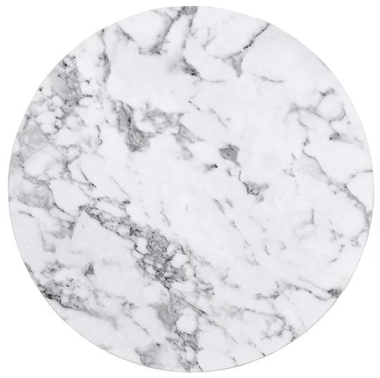 Luxusnosti stolku napomáhá dekor bílého mramoru.