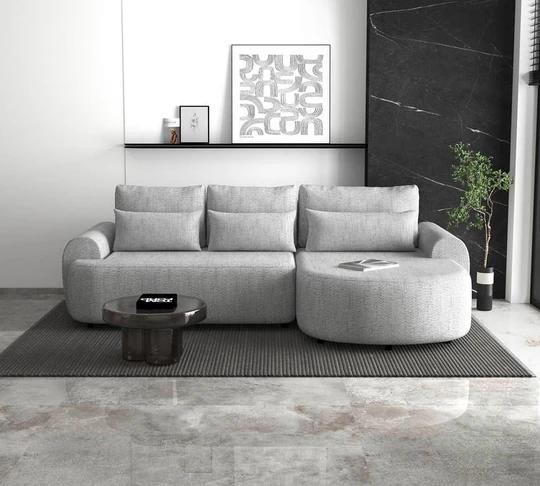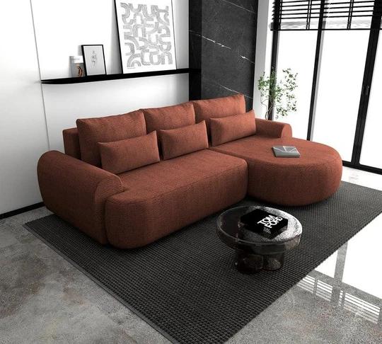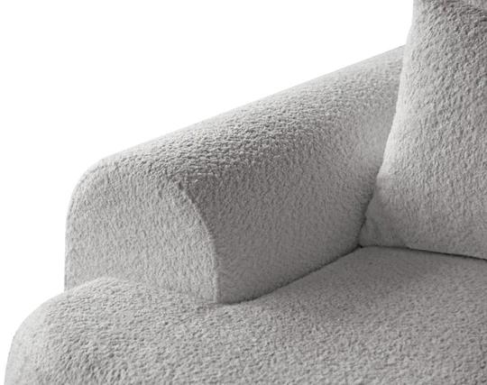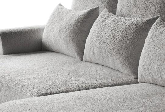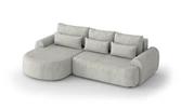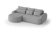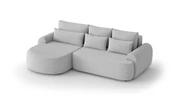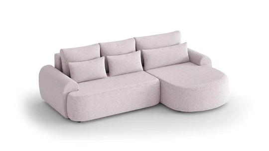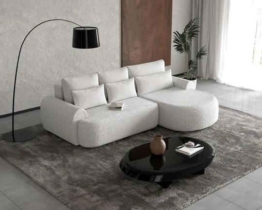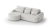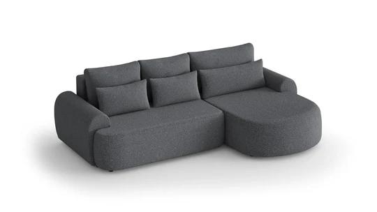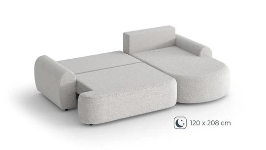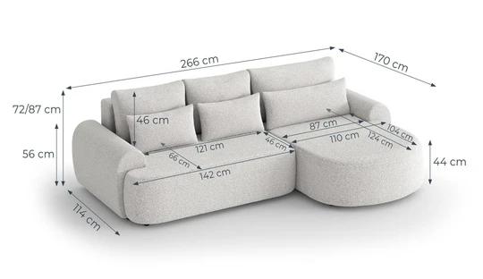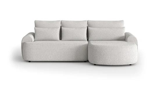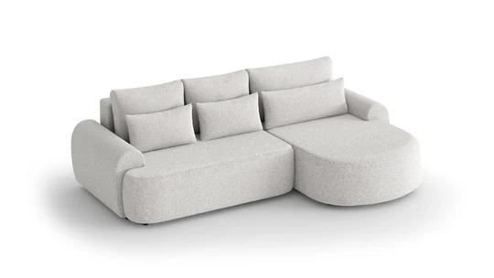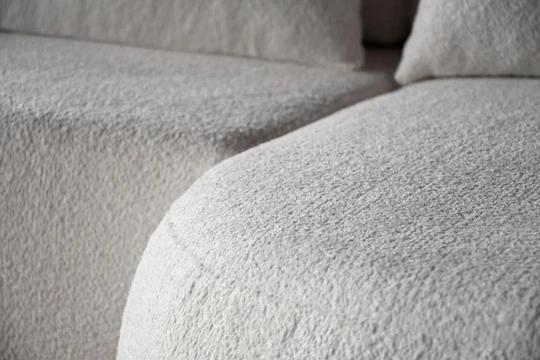 Trendy boucle rohová sedací souprava bude perfektním místem pro příjemně strávené chvíle doma. Pohodlné sezení doplňují dvě řady polštářků a zaoblené područky, díky kterým bude ideální pro lenošení.
