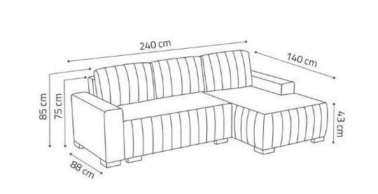 Sedačka disponuje úložným prostorem, do kterého schováte vše, co nebudete potřebovat. Pokud se rozhodnete strávit noc u televize, můžete ji rozložit a získáte tím prostor o velikosti 195x130 cm.