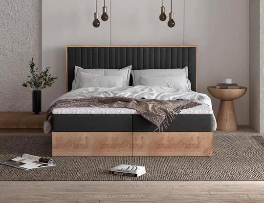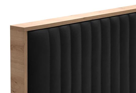 Dekorativní korpus je dokonalou imitací dřeva v dekoru dub artisan. Za pozornost stojí také majestátní prošívané čelo, které dodává posteli na hřejivosti.