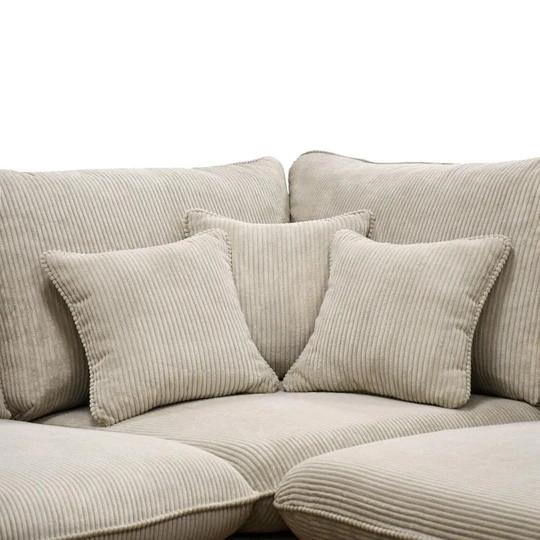 Její součástí je několik polštářů a malých polštářků, které jsou volně položené a zapínají se na zip. Jsou vyplněné silikonovými kuličkami a pěnovým granulátem.
