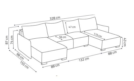 Sedačka disponuje úložným prostorem, do kterého schováte vše, co nebudete potřebovat. Pokud se rozhodnete strávit noc u televize, můžete ji rozložit a získáte tím prostor o velikosti 140x305 cm.