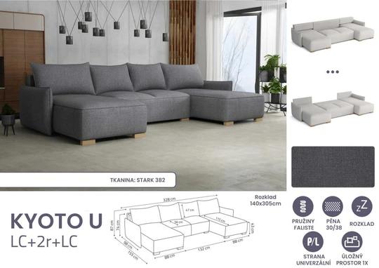 KYOTO U rozkládací sedací souprava ve tvaru U s úložným prostorem