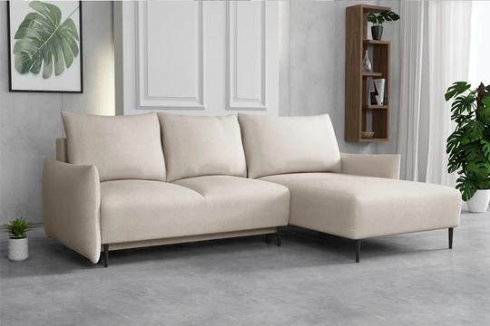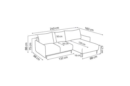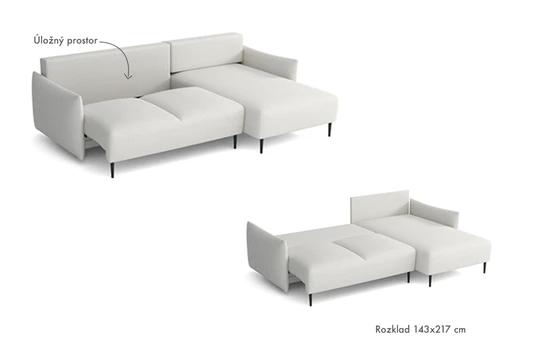 Díky 16cm vysokým nožkám vypadá sedačka mimořádně lehce a moderně. Sedačce nechybí úložný prostor a rozkládací funkce, která nabízí rozměr spací plochy 217x143 cm.
