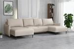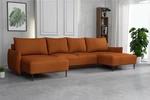 Díky 16cm vysokým nožkám vypadá sedačka mimořádně lehce a moderně. Sedačce nechybí úložný prostor a rozkládací funkce, která nabízí rozměr spací plochy 305x143 cm.