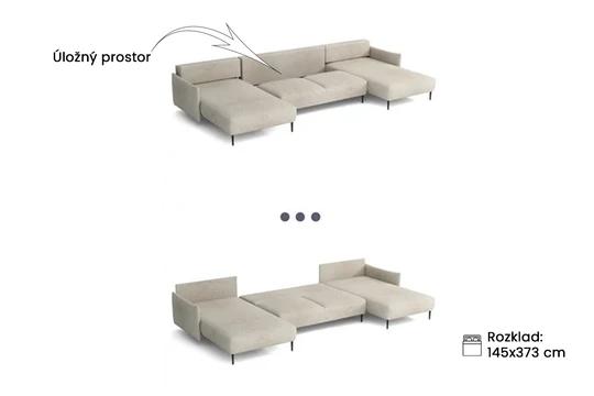 LAVEN U sedačka ve tvaru U s rozkládací funkcí a úložným prostorem