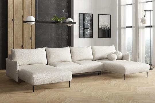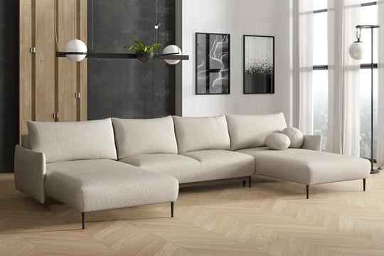 LAVEN U je rozkládací sedací souprava potažena kvalitní látkou Anthology v bouclé (buklé) stylu která přidává sedačce nádech luxusu a sofistikovanosti.