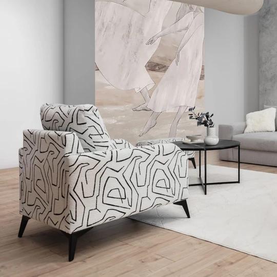 Konstrukce ze dřeva, překližky a dřevotřísky zaručuje stabilitu, zatímco sedák s výplní ze středně měkké T-pěny a pružin Faliste poskytuje pohodlí. Vysoké kovové nohy dodávají křeslu jedinečný styl a umožnují jednoduší uklid pod nábytek.