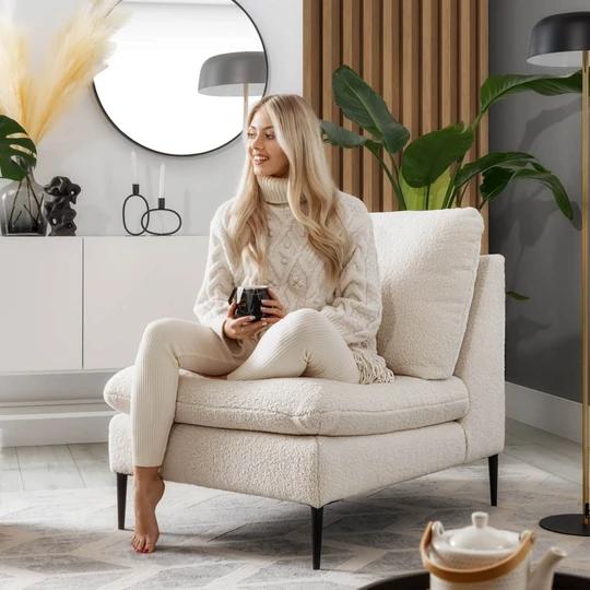 Vysoké kovové nožky jsou dostupné ve 3 barvách: černá, zlatá a chrom, a díky výšce 15 cm umožňují snadný přístup pro robotické vysavyče. Pokud kovové nožky nejsou nic pro vás, prohlédněte si naše křeslo Porter – stejné rozměry a pohodlí, ale s dřevěnými nožkami ve výběru z 5 barev.