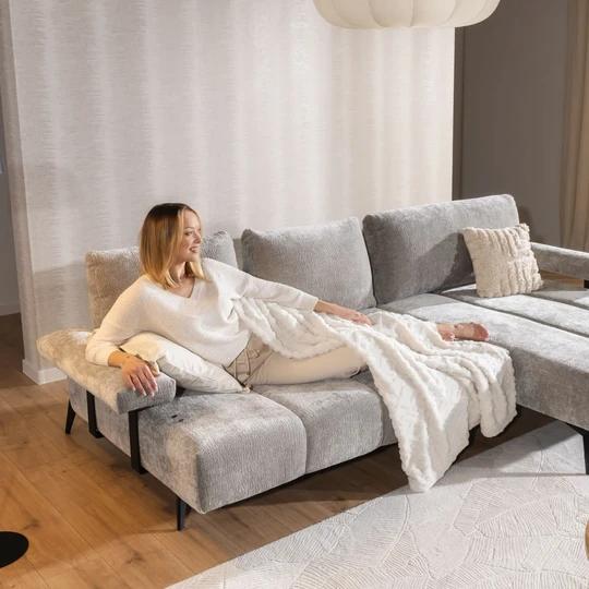 VINCENZO rohová sedací souprava s nastavitelnou hloubkou sedu a elektrickým výsuvem