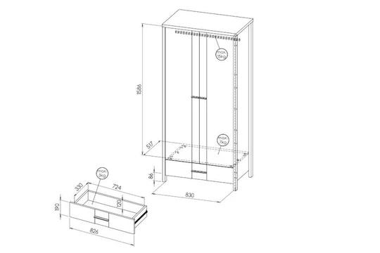 Skříň je vybavená šatní tyčí a zásuvkou.