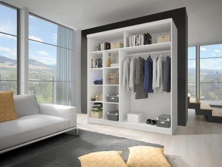 MULTI 35 šatní skříň se zrcadlem a posuvnými dveřmi, bílá | 3 rozměry |, 183 cm