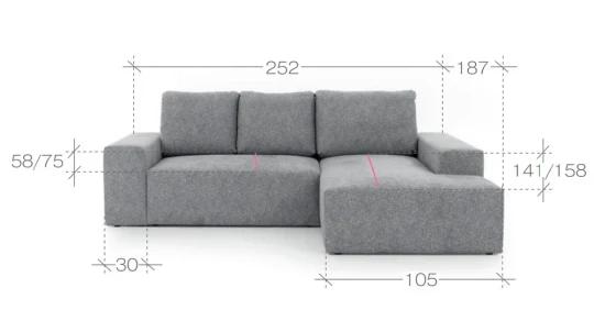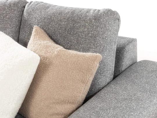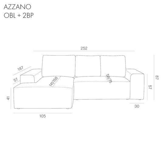 Sedací souprava Azzano je bez možnosti rozkladu a úložného prostoru. Na výběr je i strana rohové části. Dekorativní polštářky na fotografiích nejsou součástí vybavení sedací soupravy.