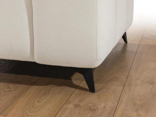 Díky pěnové výplni protkané kvalitními pružinami zajistí pohodlné měkké sezení. Konstrukce je vyrobená z kombinace měkkého a tvrdého dřeva (dřevotříska, borovicové dřevo, překližka). Elegantní kovové nožky jsou k dispozici v černé nebo chromové barvě.