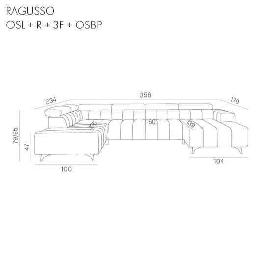 Díly sedací soupravy Ragusso U: OSL+R+3F+OSBP / OSBL + 3F + R + OSP