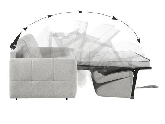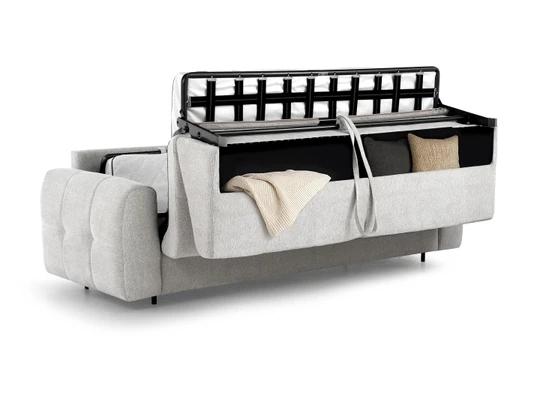 Pohovka navíc nabízí úložný prostor na ložní prádlo, pevné sedací popruhy pro větší pohodlí, čalouněná záda vhodná i pro volné umístění v prostoru a moderní, nadčasový vzhled, který se hodí do každého interiéru.