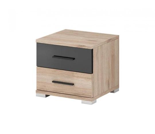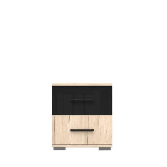 Elegantní kombinace dekoru dubu San Remo s černými prvky dodává stolku nadčasový vzhled, který snadno sladíte s ostatním nábytkem z kolekce Libera. Dvě prostorné zásuvky umožňují přehledné uspořádání osobních věcí, knih nebo elektroniky, zatímco horní deska nabízí ideální prostor pro lampičku, telefon nebo dekorace.